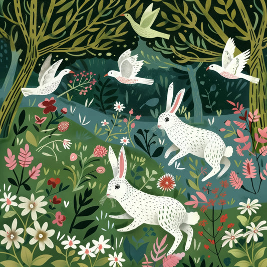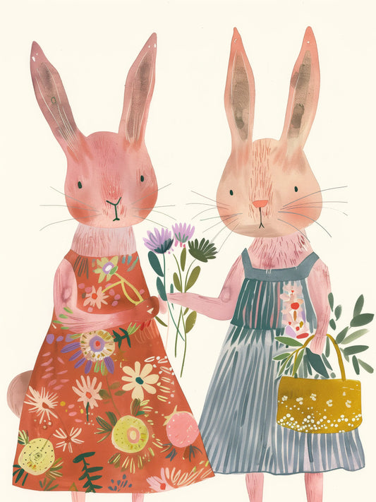 Зайци Разменят Цветя Постер